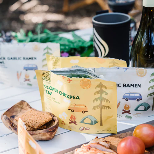 This is what it's all about! Being bold, bright, and seizing the moments.Ā Poe & Co. Folk Foods' Coconut Chickpea Stew with basmati rice, cauliflower, and turmeric is plant-based (vegan), uses clean ingredients, and serves one happy camper.