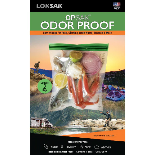 OPSAK bags are an enhanced aLOKSAK, as they are not just waterproof but also odor and vapor-proof. So if youâre going camping, you will sleep peacefully knowing your food is stored in âbear-proofâ state-of-the-art storage bags that wonât leak odors like traditional storage containers. Need to take it a step further? They can also be used to safely and discreetly store body waste. OPSAK bags are re-sealable and proven to be odor-proof. Whether you are camping, traveling with a baby, or adventure racing, these lightweight storage bags will make for a safer, more pleasurable journey.
