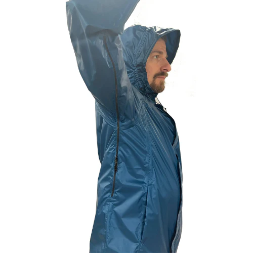 Stay dry with this completely waterproof rain jacket by LightHeart Gear. LightHeart Gearās ultralight PFAS-free rain jackets are made from a permanently waterproof Polyester material with a Silicone coating on the outside and a polyurethane coating on the inside, which is purposefully non-breathable.Ā Ā All seams are seam-taped, and the extra-large pit-zips utilize waterproof zippers.Ā Ā The generous pit zips provide guaranteed breathability when necessary and allow you to slip your arms out of them to wear the garment as a vest when desired.Ā Ā A roomy hood allows you to wear a hat or cap underneath, and a small flexible brim help keep the rain off your face. With several well-thought-through features, this jacket is ready for any rainy adventure.Ā