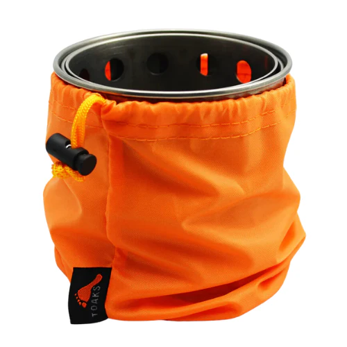 This stove can nest in TOAKS 1100ml or 1600ml pot (sold separately) perfectly. Durable nylon stuff sack included for easy storage. TOAKS 375 or 450ml cups can nest within this stove set.