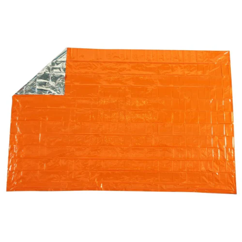 The 90% heat-reflective Emergency Blanket is made from a vacuum-metalized polyethylene, resisting rips and tears so that it will not shred if nicked or punctured. It is waterproof, quiet, and won't crinkle in high winds, while the high-visibility orange helps rescuers find you in all terrains.