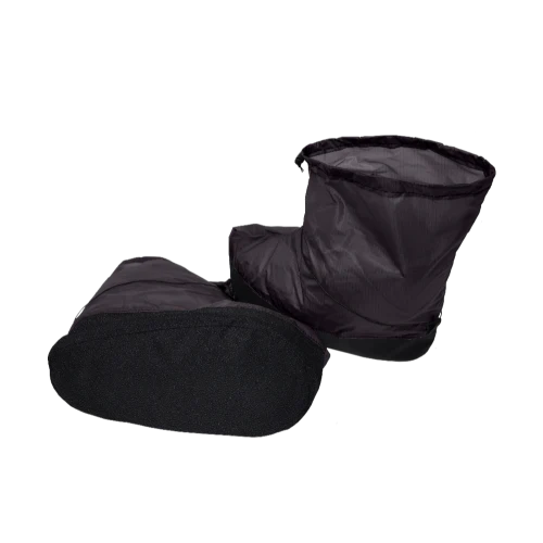 Goosefeet Gear's waterproof over-booties are specifically designed as a rugged shell for their Down Socks, so you can wear them around camp and for those midnight calls of nature. A sil-nylon upper with a shock-cord drawstring at the top seals out rain, snow, and the cold. A second draw-cord at the ankle helps cinch the over-booties around the socks.