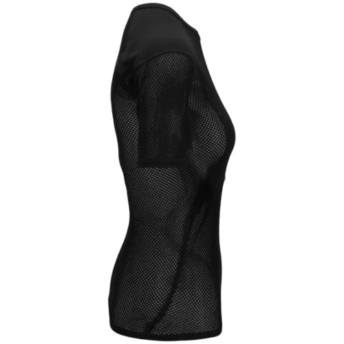 This base layer t-sleeve mesh shirt provides insulation and breathability. An open-weave "fishnet" construction means perspiration vapor can be rapidly transported to the outer layers and dry faster than a solid knit construction. The Polycolon® mesh provides 4 to 6 times the insulation value of solid knits while keeping moisture off the skin. The solid knit inlay provides a comfort layer under pack straps and to the chest area.